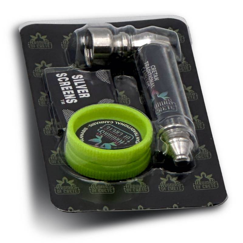Μεταλλική Πίπα με Μεταλλική Σίτα και Grinder – Aromas of Crete