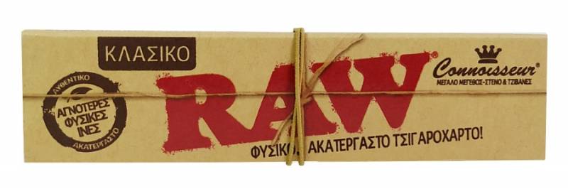 Με την λέξη ακατέργαστα εννοούμε την μη χημική λεύκανση του χαρτιού. Αυτός είναι και ο λόγος που το Raw Κλασικό έχει καφέ χρώμα.