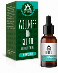 Η σειρά Aromas of Crete – Wellness ενισχύει το ανοσοποιητικό χάρη στην αντιφλεγμονώδη του δράση και ρυθμίζει τον ύπνο, τη μνήμη και την όρεξη ενώ παράλληλα συμβάλλει στην ενεργεία και την τόνωση του οργανισμού. Ο συνδυασμός CBD & CBG βελτιώνει τη διάθεση και εξαλείφει τα συμπτώματα κατάθλιψης και άγχους