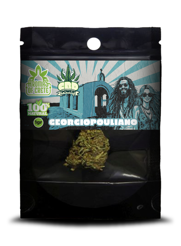 Aromas of Crete introduces the Georgiopouliano CBD flower, a premium industrial hemp strain cultivated in the rich lands of Crete. Available in 1g single packs and a 2+1g value bundle, it offers a naturally balanced CBD experience for everyday wellness.
