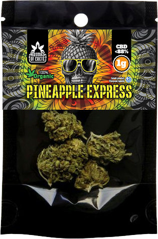 Aromas of Crete presents the excellent Pineapple Express flower, of the Cannabis sativa L variety. It is a crop grown outside of Greece, this year's harvest, rich in cannabidiol (CBD).
