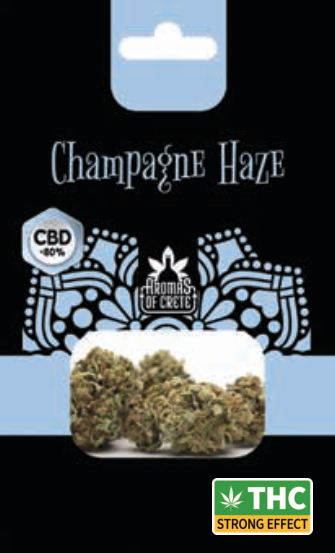 Aromas of Crete presents the excellent Champagne Haze flower, of the Cannabis sativa L variety. It is a crop grown outside Greece, this year's harvest, rich in cannabidiol (CBD).